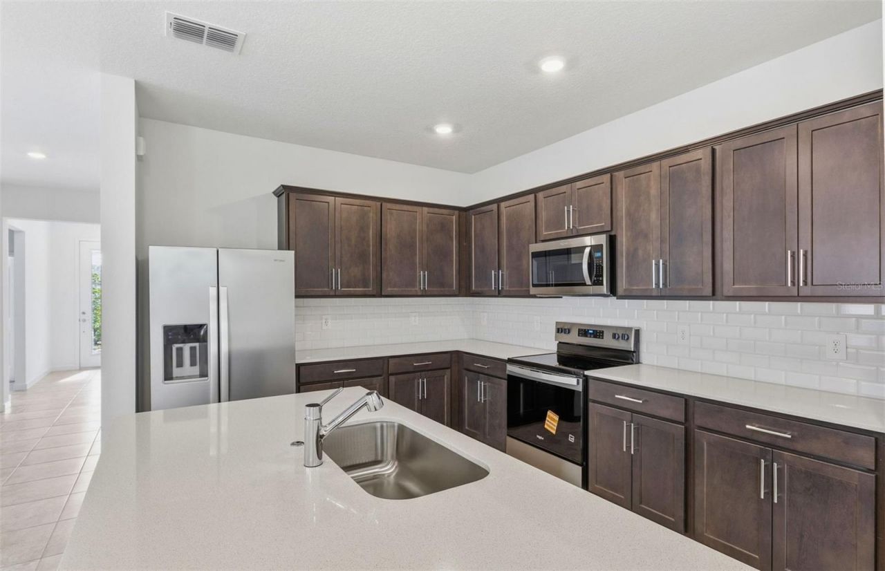 One or more photo(s) has been virtually staged. Move in Ready Available NOW!!Pulte Homes is selling in Valleybrook! Enjoy all the benefits of a new construction home in this boutique community located in Spring Hill. Enjoy convenient access to the Suncoast Parkway, US-41, and Ridge Rd. Extension, and Florida's beautiful Nature Coast. Plus, Valleybrook features a community park with a playground, and No CDD fees.This beautifully designed home features the sought-after Medina floor plan, showcasing an open-concept layout that effortlessly blends style and functionality. At the heart of the home is a stylish kitchen that's sure to impress. It boasts a generous center island with single bowl sink, stylish cabinets, quartz countertops with 3x6 tiled backsplash, and a full suite of Whirlpool stainless steel appliances-including a refrigerator, dishwasher, microwave, and range. It's the perfect space for both everyday living and entertaining.The bathrooms have matching cabinets and quartz countertops, walk in shower with heavy glass door and dual sinks in the Owner's bath. There is 18x18 floor tile in the main living areas, baths, and laundry room, and stain-resistant carpet in the bedrooms. This home makes great use of space with a 4th bedroom, a convenient laundry room with Whirlpool washer and dryer and additional storage in the HVAC closet, a large gathering room, a covered lanai, and a 2-car garage.Additional upgrades include 4 LED downlights in the gathering room, pendant pre-wiring in the kitchen, upgraded door hardware, whole house faux wood blinds and a Smart Home technology package with video doorbell. Enjoy peace of mind with Pulte's transferable, 10-year Limited Structural Warranty that covers materials and workmanship in the 1st year, workability of plumbing, electrical, HVAC, and other mechanical systems through the 2nd year, various types of water infiltration and internal leaks through the 5th year, and the structural integrity of the home through the 10th year. Plus, we're currently offering limited-time incentives and below-market rates!